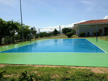 海南三亞中海石油南山基地5mm硅PU排球場順利完工,感謝客戶一直以來對廣東鴻星體育設施工程有限公司的信任與支持!